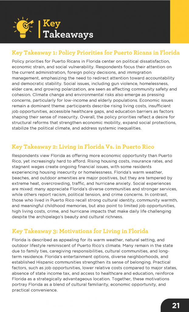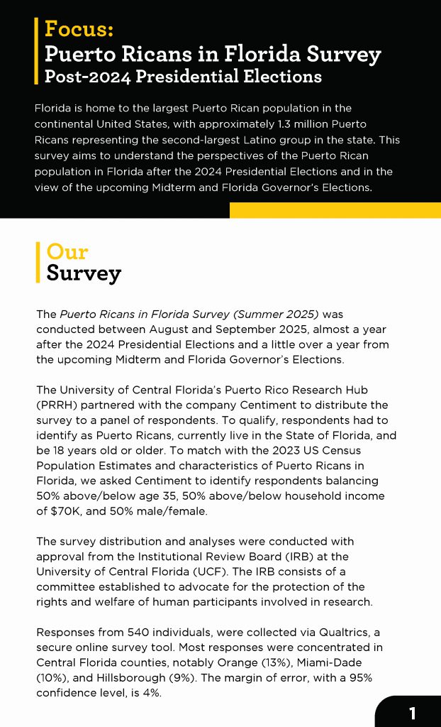 To cite this report: Puerto Rico Research Hub. (2025). 2025 Puerto Ricans in Florida: Post-Election Survey. Full Report. Available at: https://www.global.ucf.edu/puertorico/survey2025